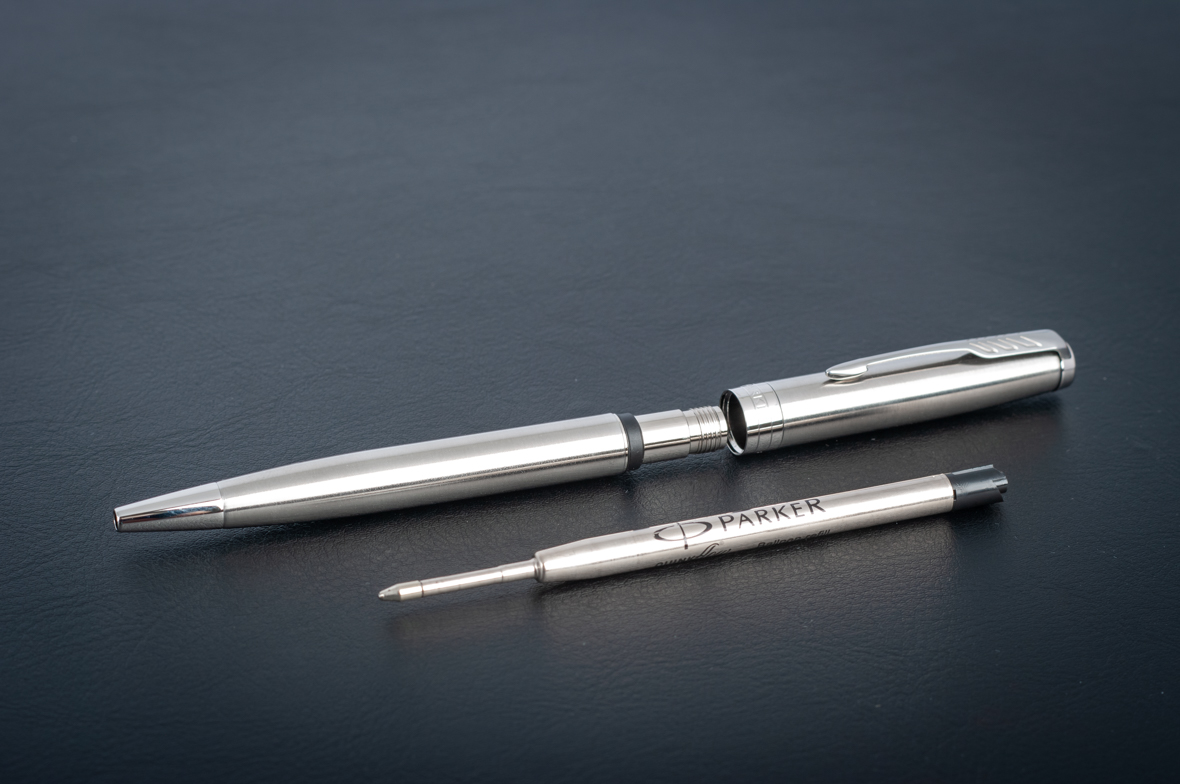 Набор Parker Sonnet Stainless Steel CT Шариковая ручка от официального дилера Parker в Дербенте. Вы можете дополнительно заказать гравировку, которая подчеркнет Вашу оригинальность и придаст памятность статусному подарку. Все ручки Паркер поставляются в фирменном футляре.
