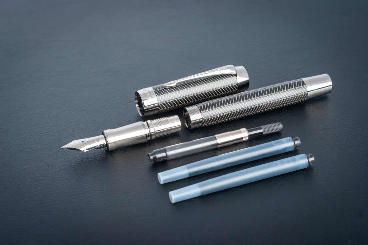 Перьевая ручка Parker Duofold Prestige Centennial Black Chevron CT от официального дилера Parker в Дербенте. Вы можете дополнительно заказать гравировку, которая подчеркнет Вашу оригинальность и придаст памятность статусному подарку. Все ручки Паркер поставляются в фирменном футляре.